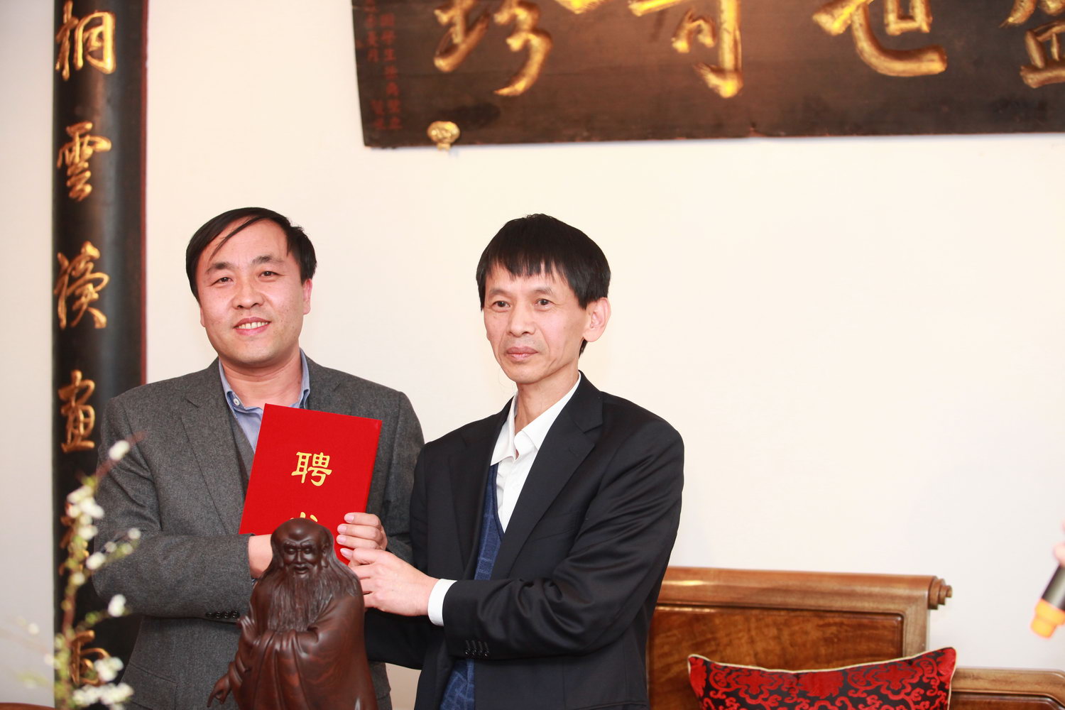 此次木雕艺术品展由山西省古建集团组织筹办,旨在为挖掘和展示中国工艺美术大师黄泉福的木雕艺术,为木雕艺术爱好者们提供了一个更好的艺术文化交流平台。展会展出的木雕作品达50余件,堪称黄泉福大师的精品之作,为前来参展的宾客们奉上了一场丰盛的艺术盛宴。展会上,黄泉福大师亲自介绍了木雕作品的创作过程,王国华董事长还诚聘黄泉福大师为集团公司专家委员会委员,并颁发了聘书。展会还邀请了澳门茶王许靖老师主持斗茶、香道、古琴等雅集共赏环节。