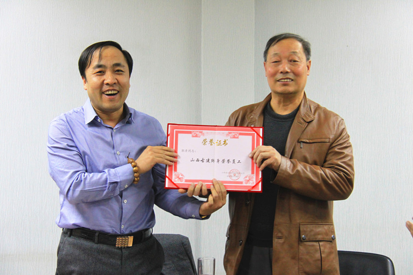 2月28日下午,公司为首批“山西古建终身荣誉员工”郭彦同志举办了隆重的颁奖典礼暨欢送会。董事长王国华带领公司全体高管以及中层管理人员参加了此次欢送会。